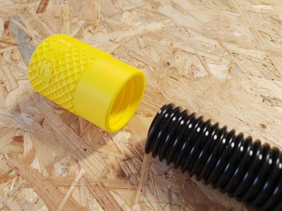 Der F32-H32 ist die grundlegende Verbindung, mit der du deine Werkstatt im Handumdrehen "osVAC ready" machst. Schraube den Adapter einfach und ohne Werkzeug auf deinen handelsüblichen Staubsaugerschlauch – fertig! Alles, was du brauchst, ist ein Standard-Staubsaugerschlauch mit 32 mm Innendurchmesser und ca. 40 mm Außendurchmesser, den du nahezu überall finden kannst.